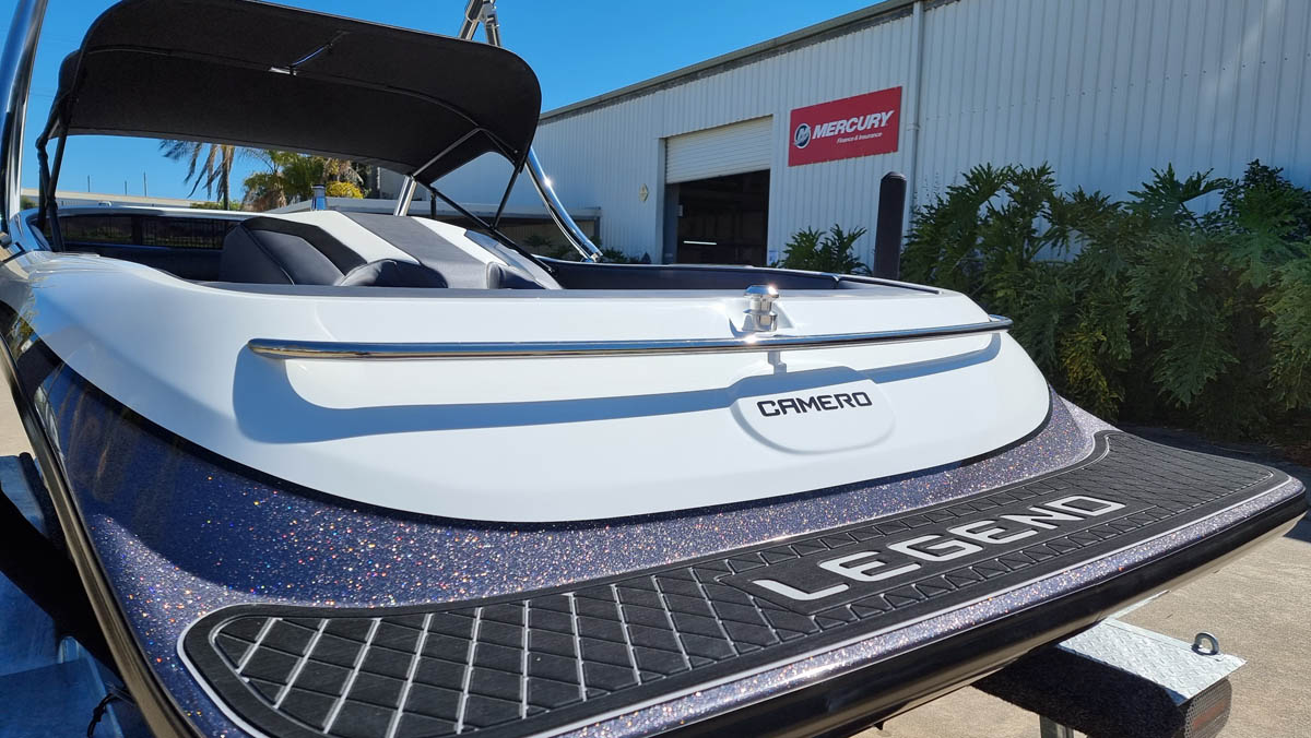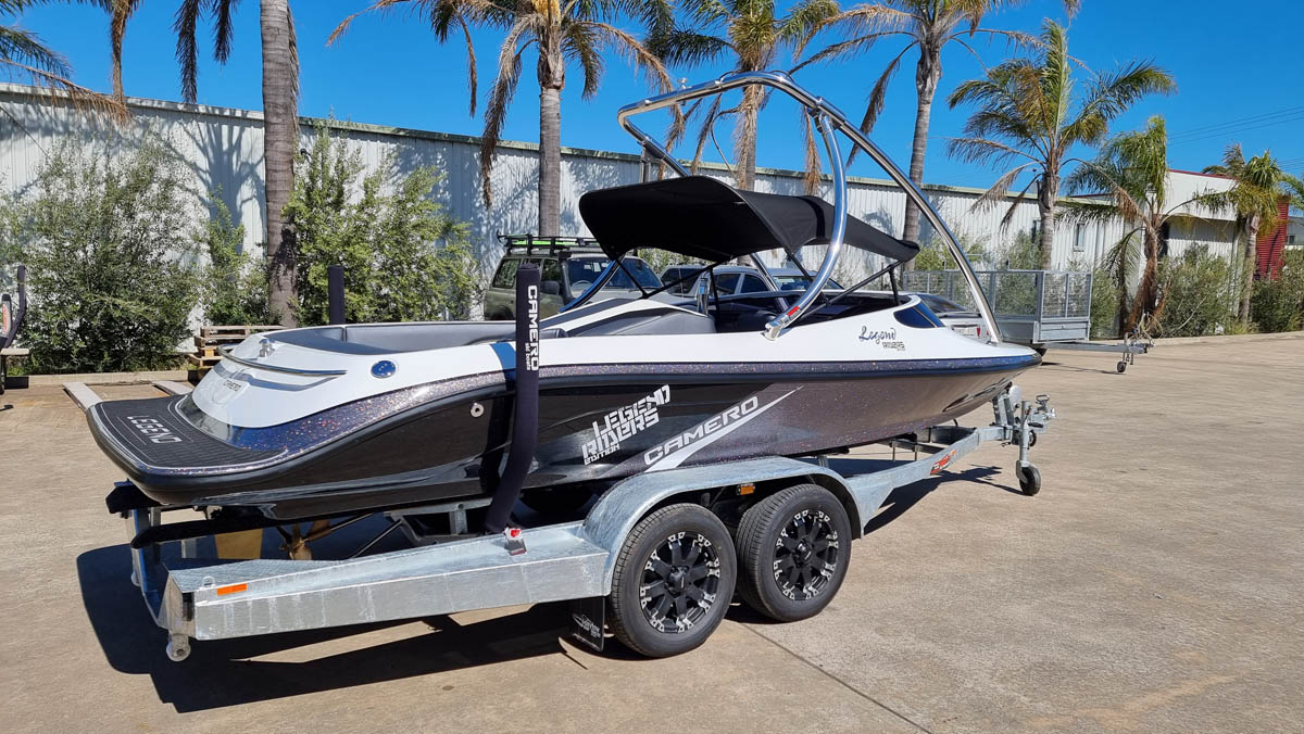 The Legend S3 Now comes standard with a 320hp 6.2Lt Mercruiser Tow Sports engine, Easytow Tandem paint over galvanised trailer, analogue gauges with GPS speedo, battery isolator switch, Fresh water flush port, automatic bilge pump, riders edition ‘military’ or ‘alpha’ graphics package with multiple colour combinations, ACME CNC cut propeller, multiple cup holders and much more!